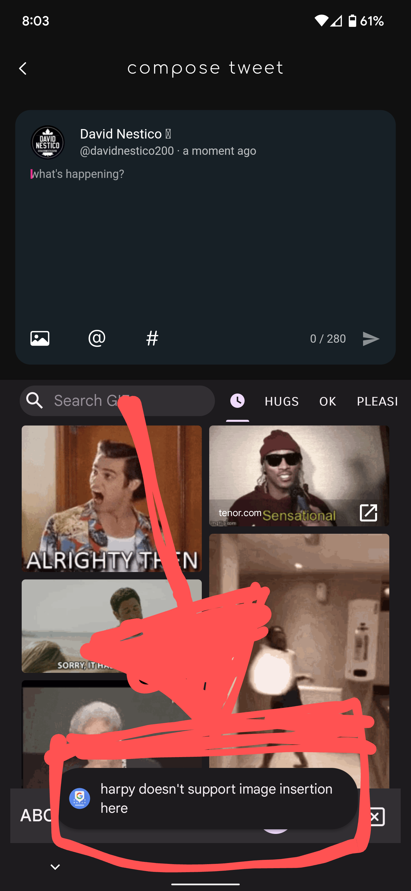 @robertodoering Speaking of GIPHY support, can you allow GIFs to be pasted in to the tweet drawer so that for now I can use GBoard's built in GIF search?