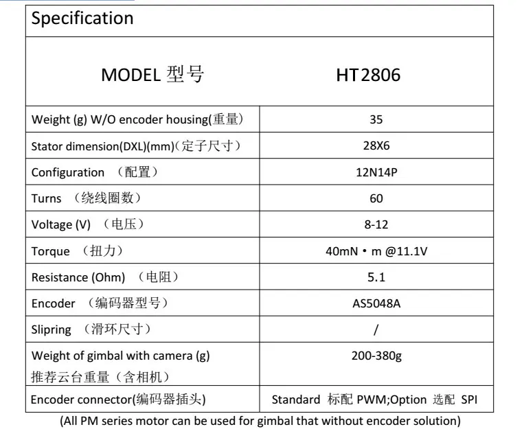 Seal enclosure to prevent dust and dirt contamination Hollow shafts are used for slipring or wiring Specifications: Copper wire (OD) 0.21mm, prewound 60 times. interface resistance is 5.1 ohm Motor size: 34.6mm (OD) * 18.3mm (height) Stator dimensions 28 mm (OD) x 4 mm (height) Hollow shaft diameter 4.5 mm configuration 12 n14p camera weighs 100-300 grams