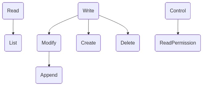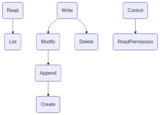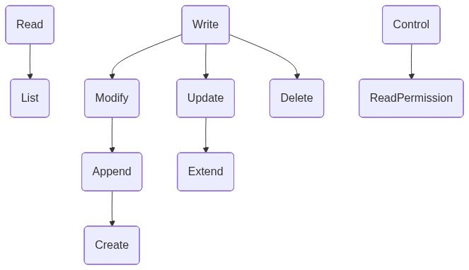 To execute a read permissions operation, an agent is required to be authorized with a ReadPermissions access mode. ReadPermissions is an access mode that is a subset of Control.