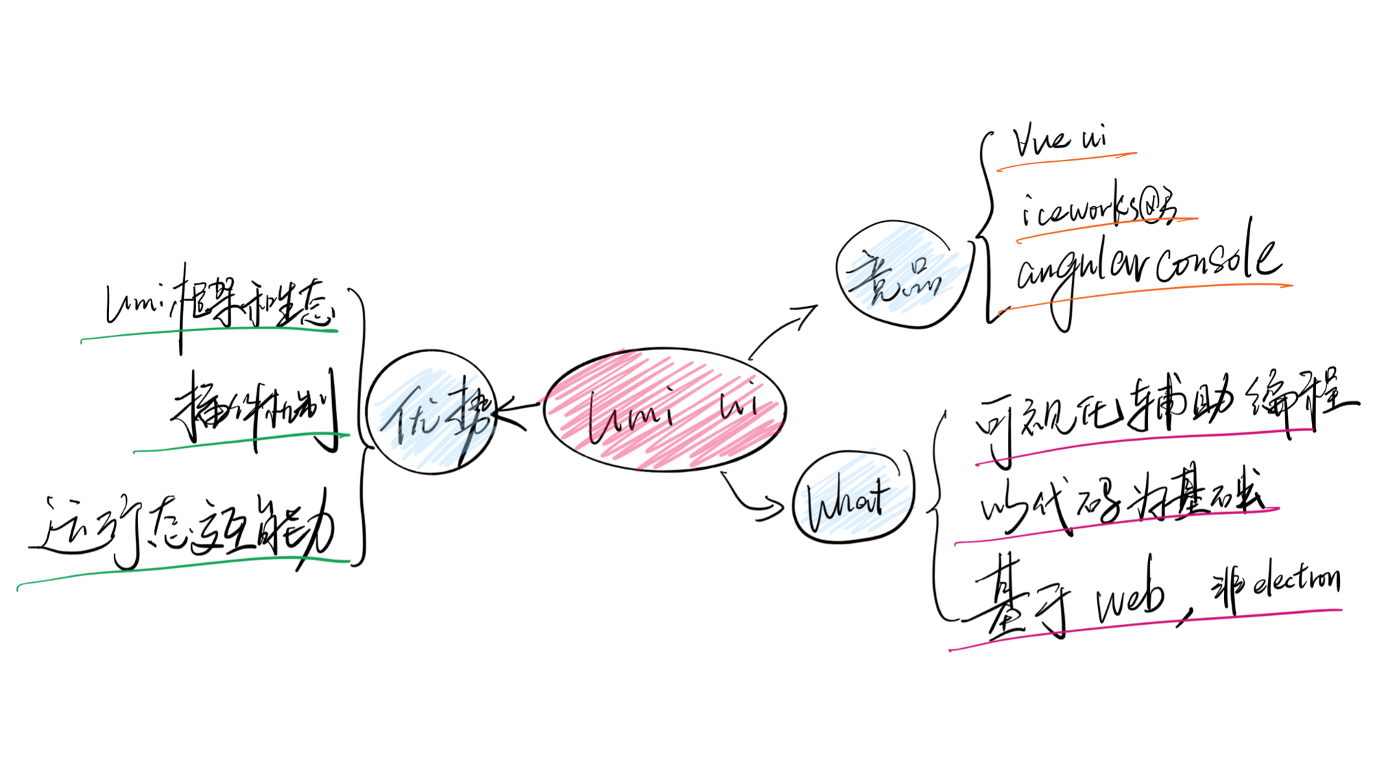 现在已有不少类似的竞品,比如 Vue CLI UI、iceworks@3 和 angular console,Umi UI 相对他们会有哪些可能的优势?