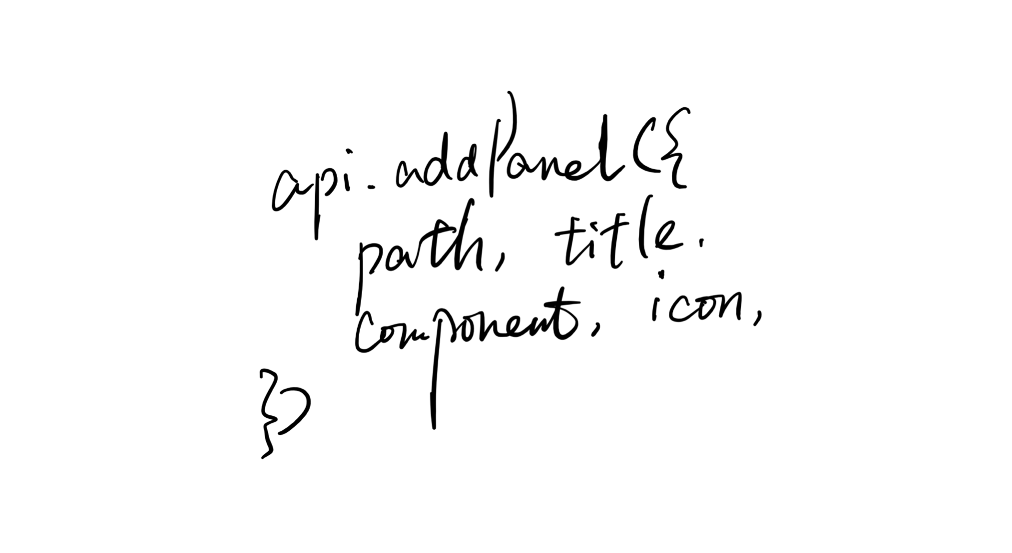 比如加一个一级菜单,我们有提供 api.addPanel,指定路径、标题、ICON 和右侧渲染的组件。