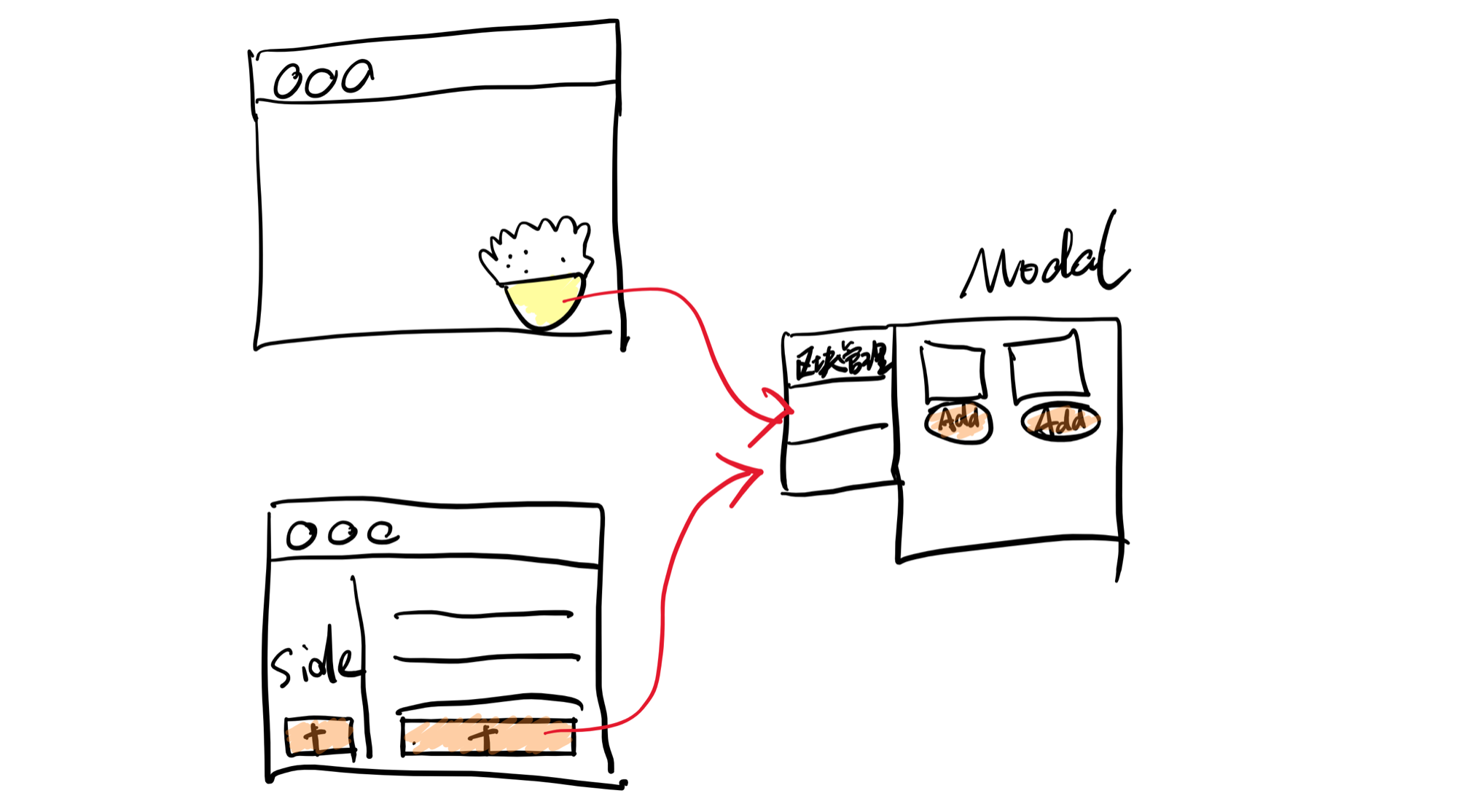 左边的 UMI UI 是一个类微前端的结构,但比通常的微前端更进一步,不仅仅路由可被扩展,前端页面里任何一部分都可挖坑,都可被插件扩展。