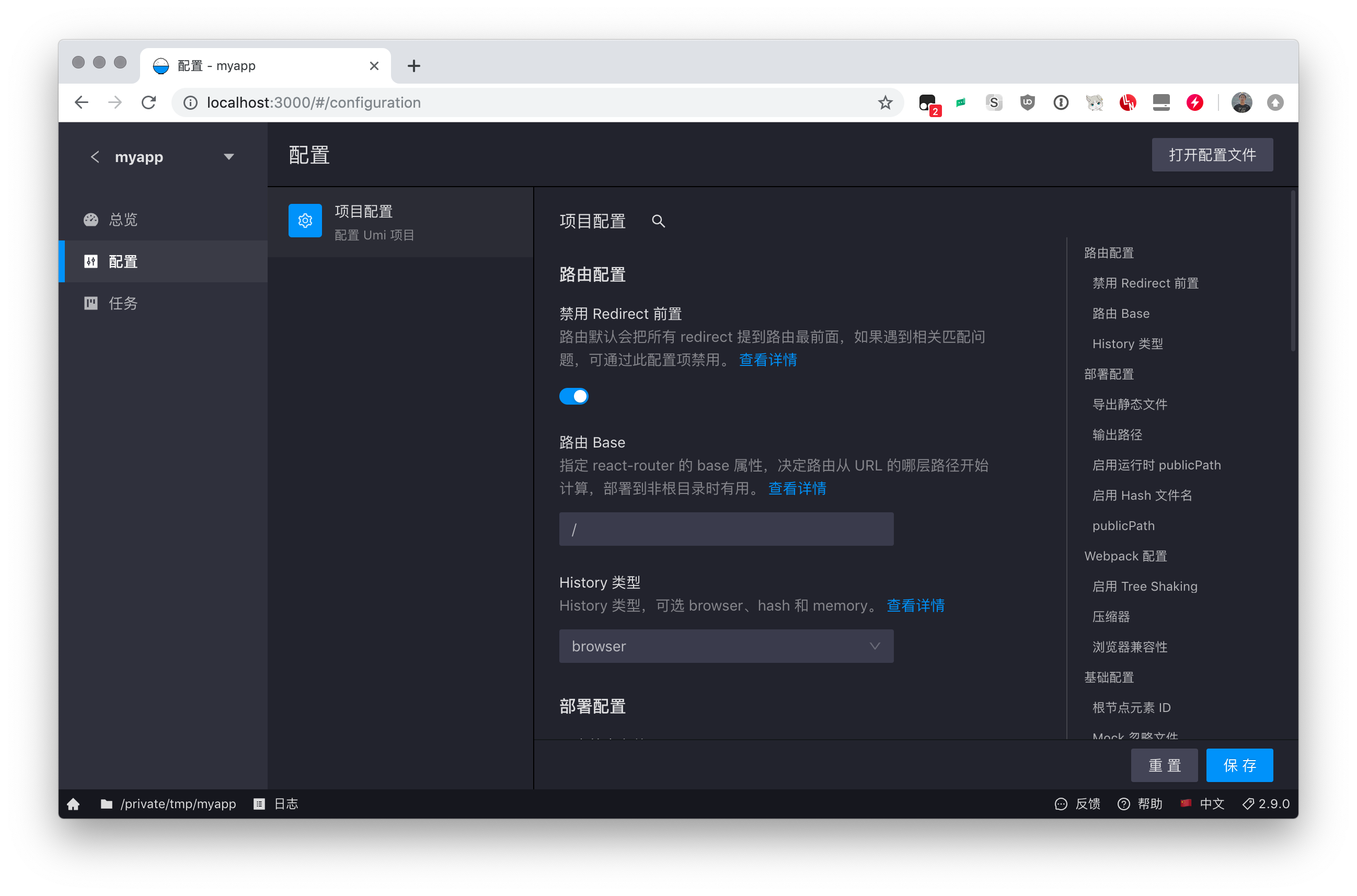 UMI 框架做了很多技术收敛,比如配置、命令、路由、构建工具等等,基于此,我们就可以在这些方面做 UI 可视化;另外是 UMI 的插件生态,已有的插件如有必要,都可以为他们的插件功能提供可视化能力。