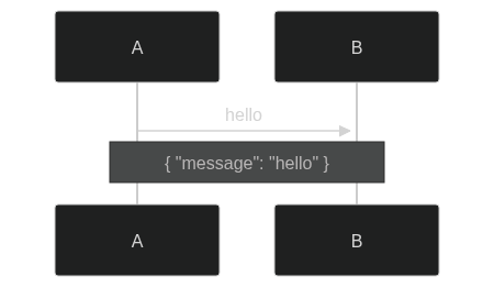 Note over A, B: { "message": "hello" }