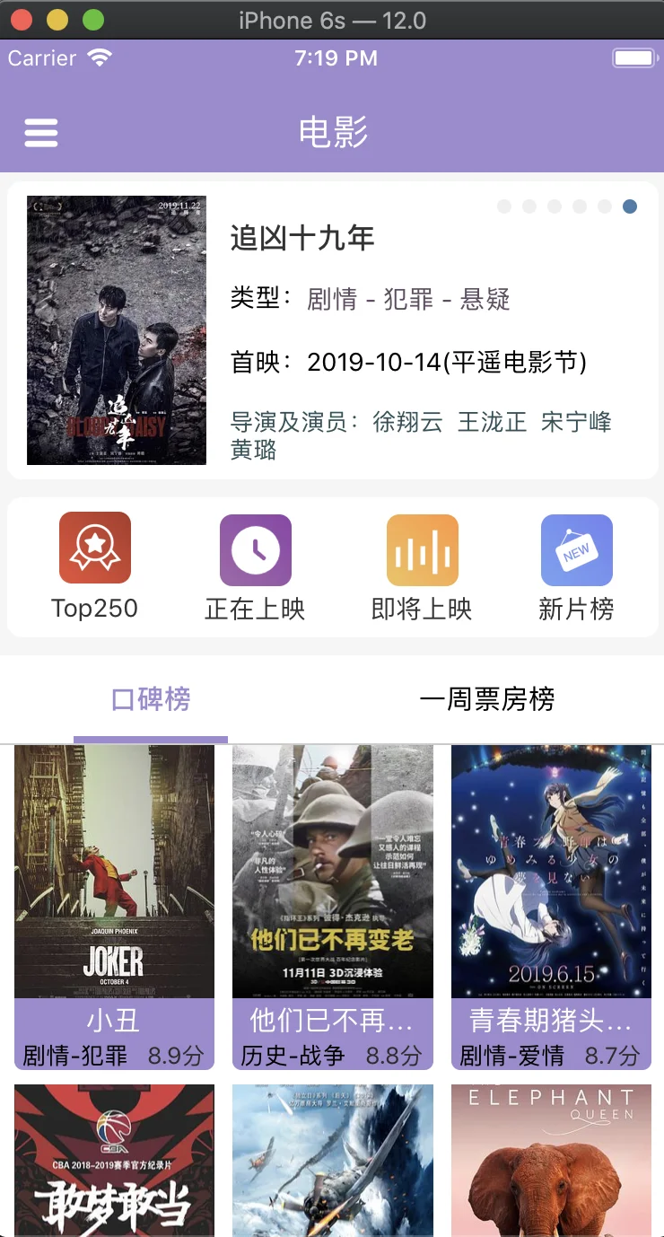 - 电影榜单以及电影,影人详情信息展示