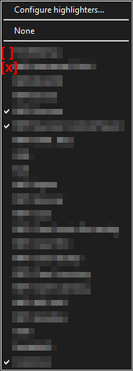 Also flags for sets would be nice in Configure highlighters... menu - for example to see the effect of set you've just created. Of course, setting flag on Space button and selecting several sets (including selecting all on Ctrl + A) would be nice.