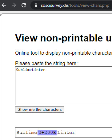 If you select that text in your browser and press Copy (Ctrl+C) then the copied string "SublimeLinter" contains the hidden character: screenshot. [if you doubleclick the above string you'll notice that you can select only either 'Sublime' or 'Linter'] and that leads to getting no results when using it to search for the package in Sublime Text's Package Control manager.