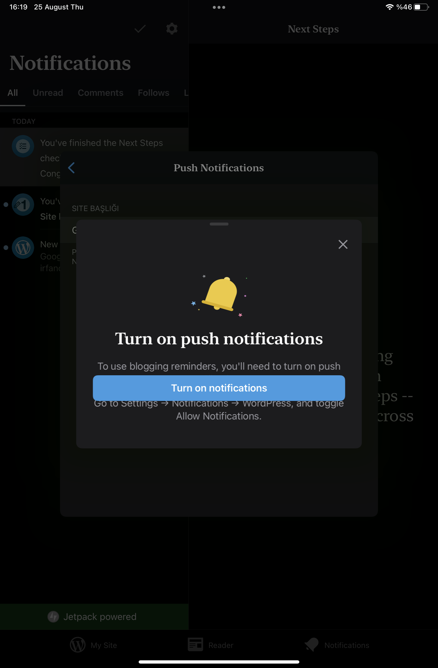 - Navigate My Site → Site Settings. Tap Blogging Reminders.