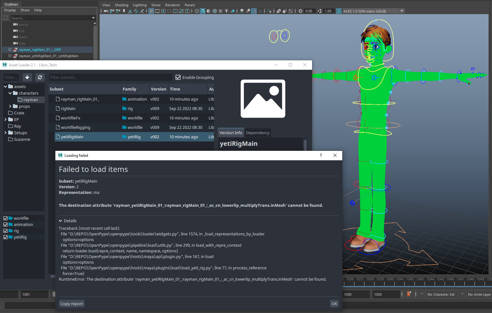 Describe the bug There is a problem with the validation of Yeti Rig Input meshes.