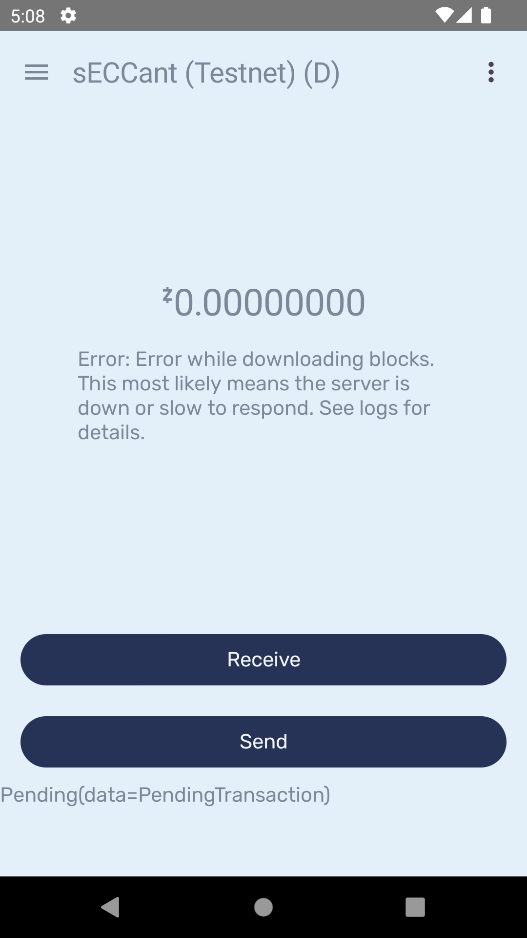 co.electriccoin.zcash.testnet.debug DefaultDispatcher-worker-6 WalletViewModel.invoke(): WALLET - Error Processor: cash.z.ecc.android.sdk.exception.CompactBlockProcessorException$FailedDownload: Error while downloading blocks. This most likely means the server is down or slow to respond. See logs for details.
