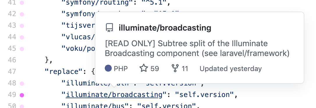 - https://octolinker-demo.now.sh/illuminate/auth/blob/master/composer.json
