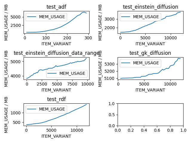- Run the calculator for different databases and measure memory scaling w.r.t the dominant scaling axis