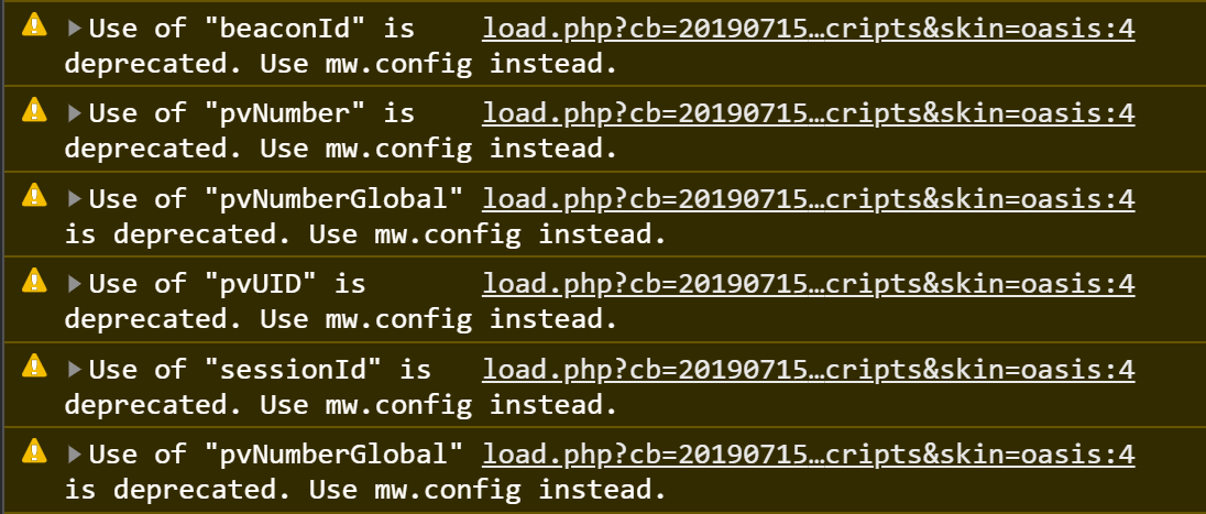 The execution of load.php spams dev tools with deprecation warnings coming from these lines: https://github.com/Wikia/ad-engine/blob/a476edf67ea556ff00fa6d99327c899591e7508a/platforms/ucp/setup/context/bill-the-lizard/ucp-bill-the-lizard.setup.ts#L35 https://github.com/Wikia/ad-engine/blob/a476edf67ea556ff00fa6d99327c899591e7508a/platforms/shared/setup/wiki-context.setup.ts#L6-L9  Chrome Dev Tools full log ```javascript load.php?cb=20190715225228&lang=en&modules=startup&only=scripts&skin=oasis:4 Use of "beaconId" is deprecated. Use...