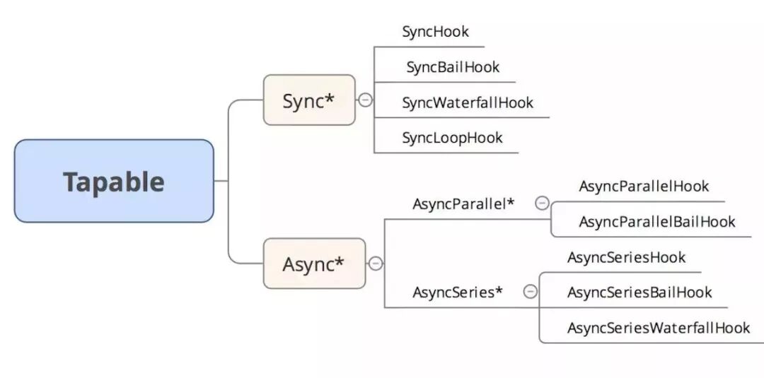 Tapable库暴露很多Hook类,为插件提供挂载的钩子