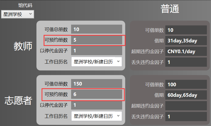 关于预约的图书数量也受到流通权限的配置