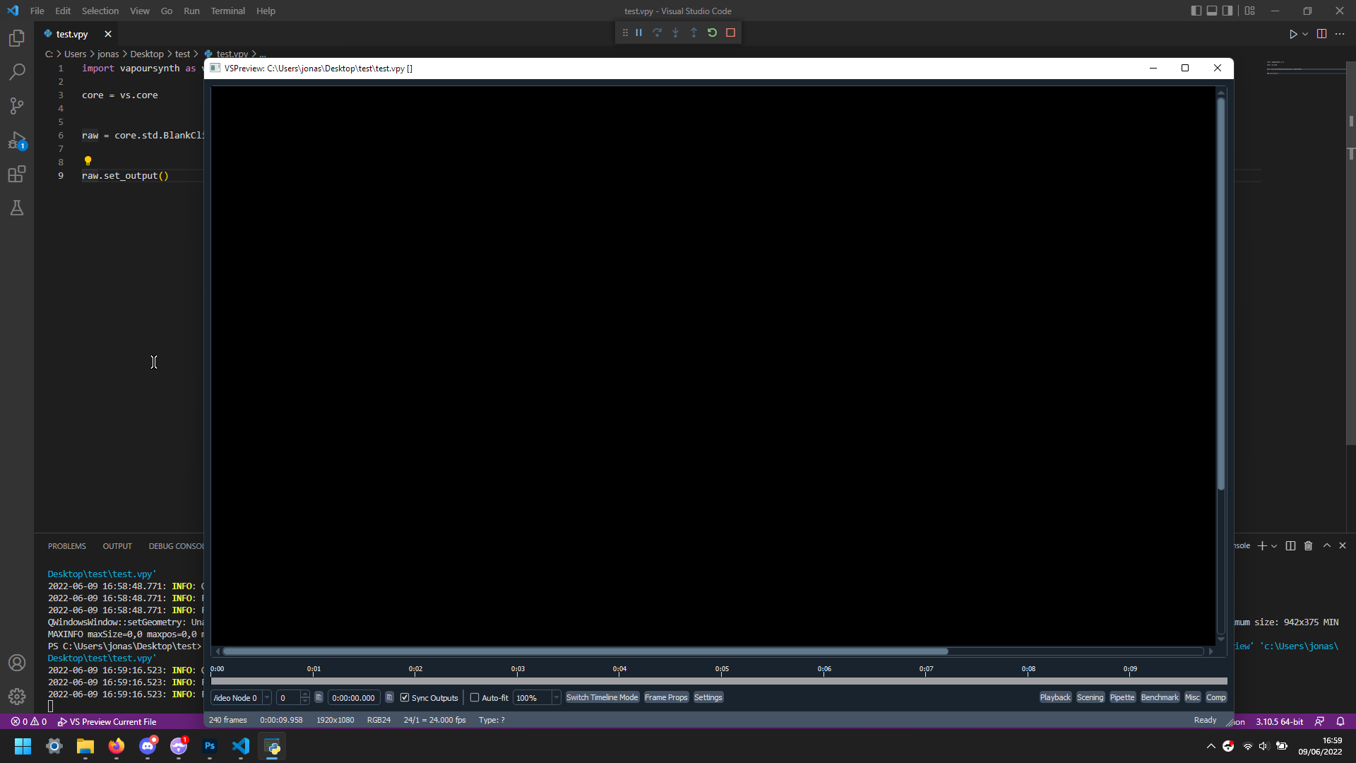 The first example is default vspreview. On the second, I relaunched vspreview after toggling some of the extra options. The window is too tall for my display so I am forced to resize manually or switch to fullscreen.