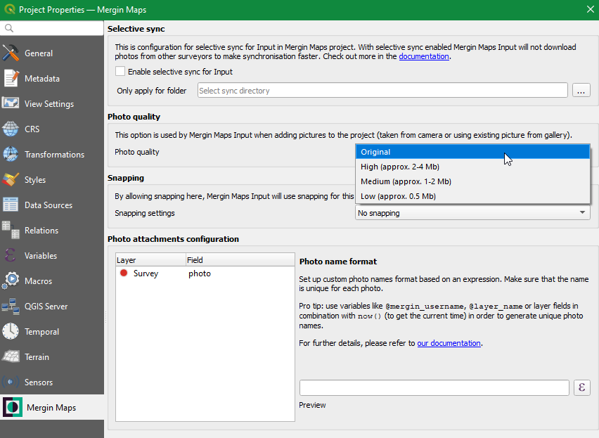 Can you please check your QGIS project properties for Mergin Maps? Is it configured to keep original photo quality?