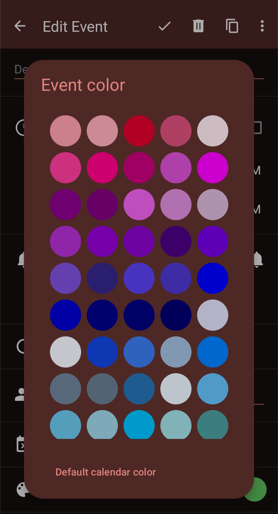 Thanks for the ideas, @tibbi! I checked DAVx⁵'s calendar settings, and it turns out the options to let apps manage colors were disabled. With these options enabled, I can change event colors in another calendar app, Etar, but when I try changing them with this debug build, the app crashes when I tap the change color button.