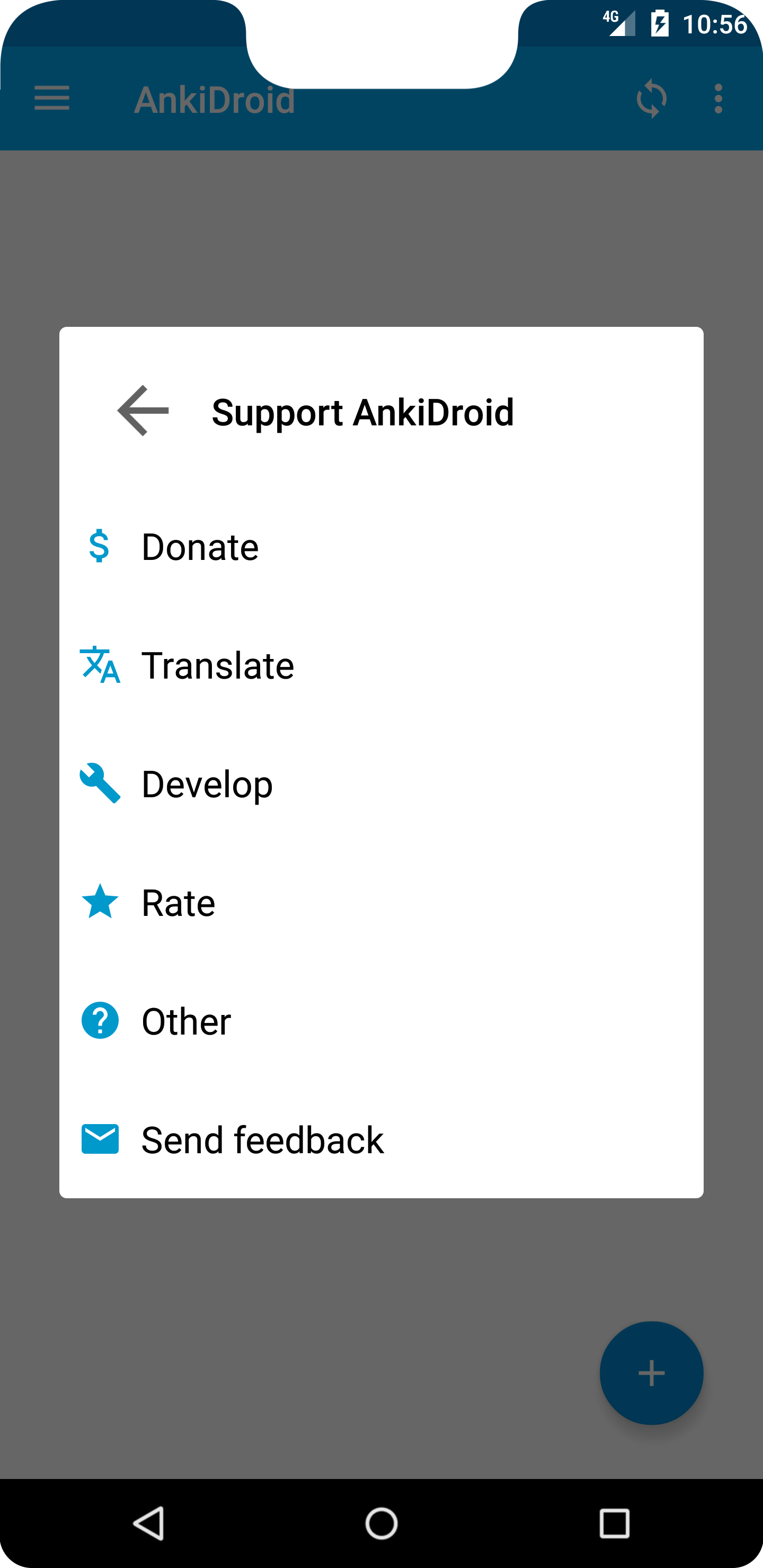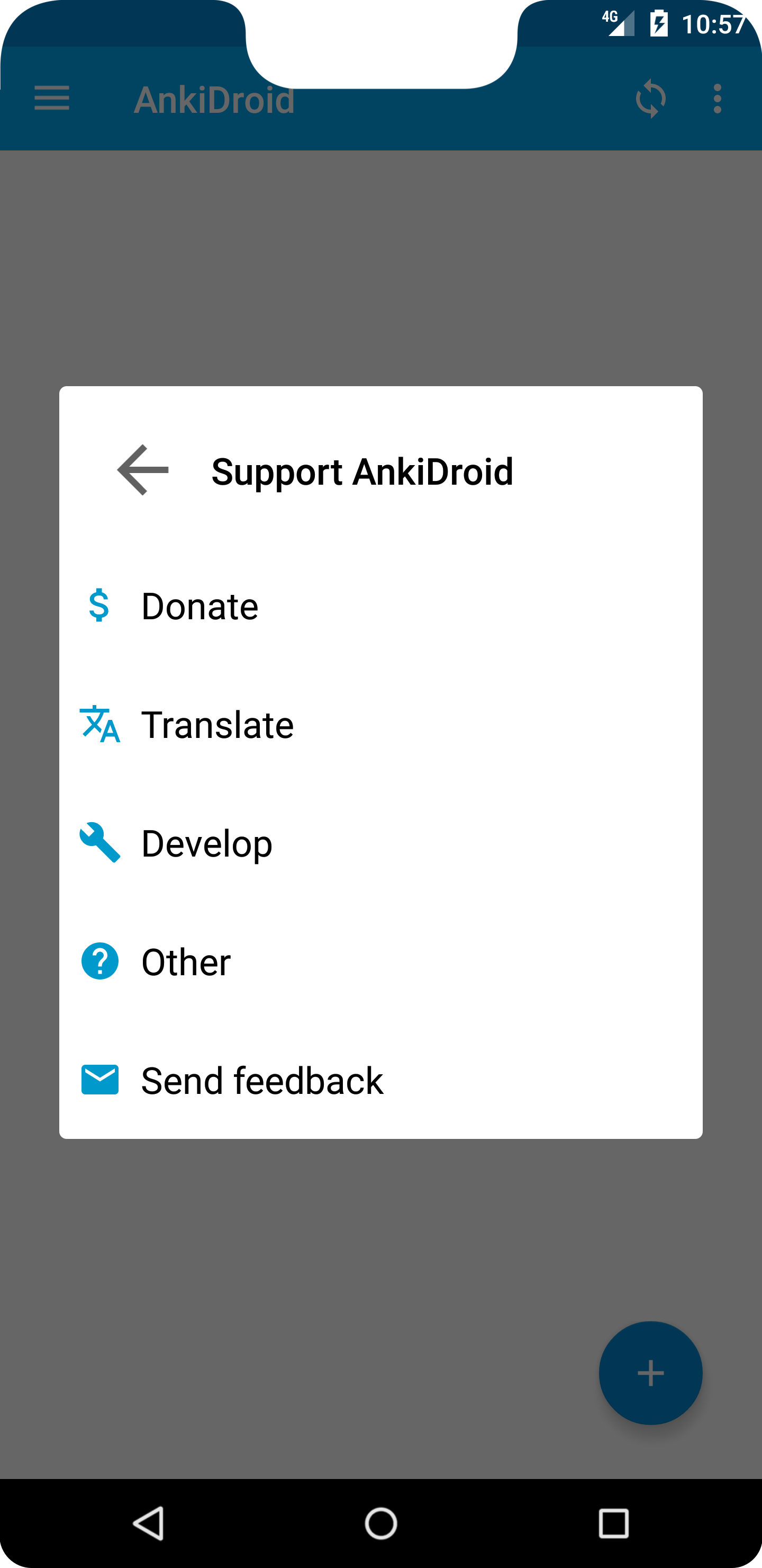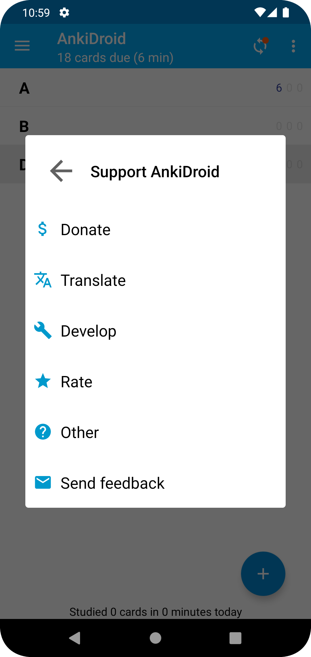 RatefromHelpDialog.createInstanceForSupportAnkiDroid()which made theRatemenu option to appear even if the application to handle it is not present on the device. See the before and after picture below on a device which doesn't have the play store app installed: