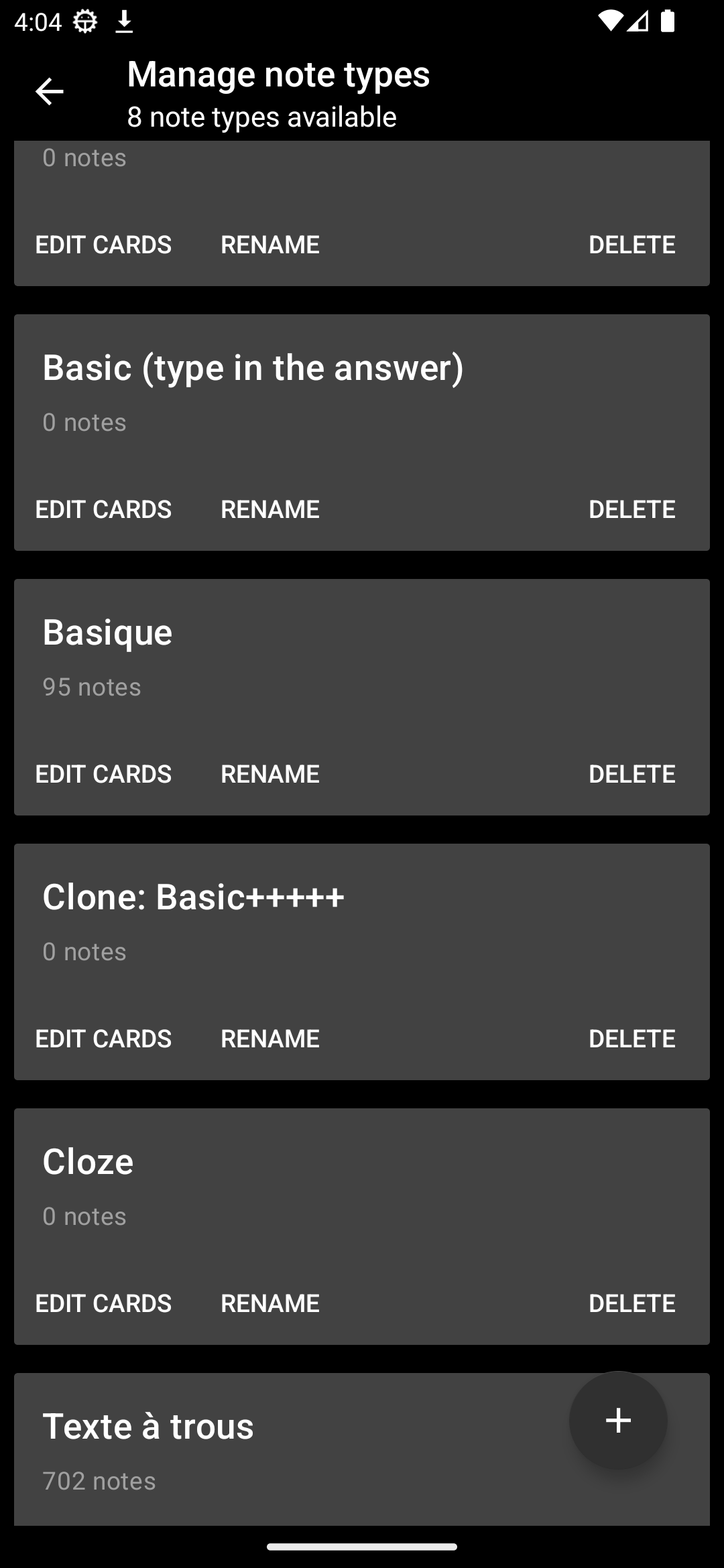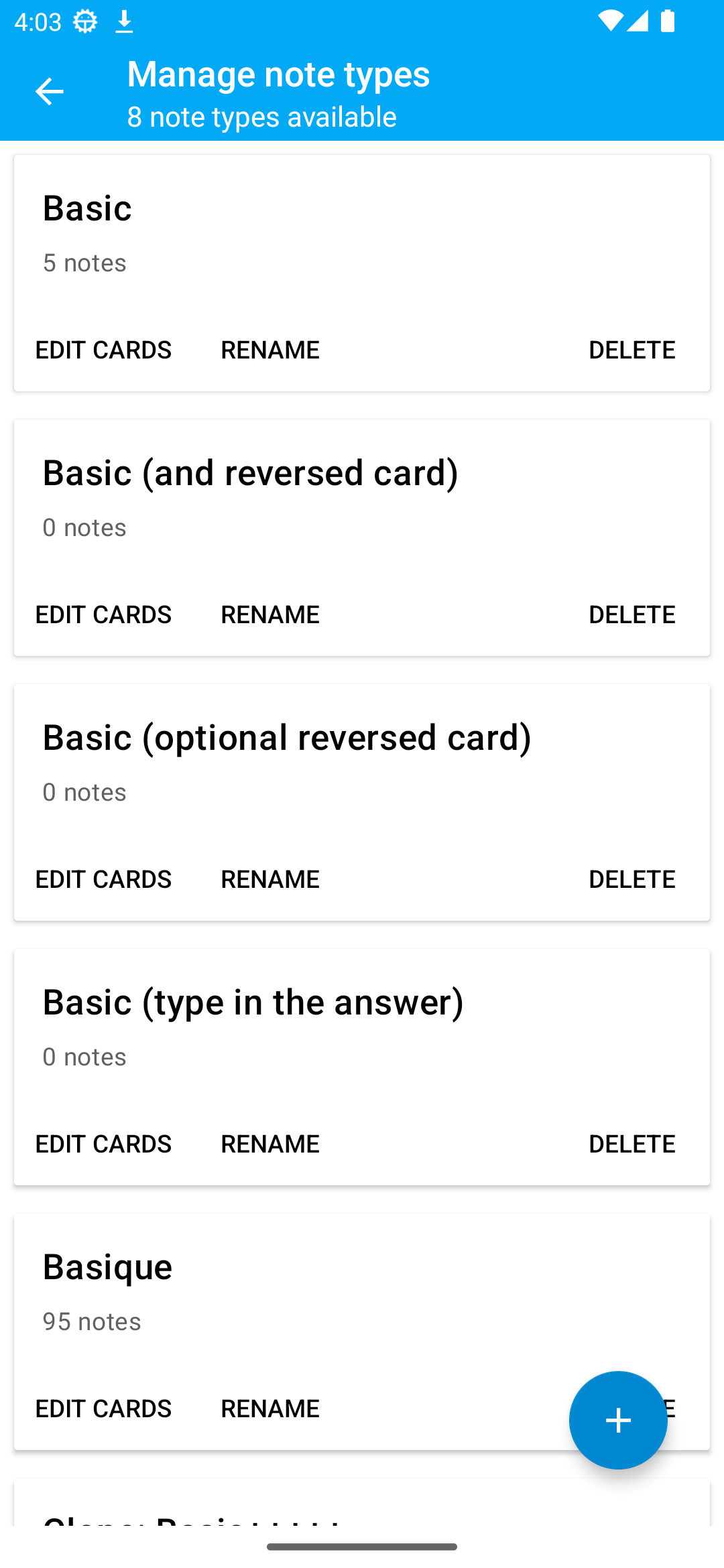 - improve UI for the notes types list by using CardView(ideally we would use the material cards but we don't currently inherit from the material themes)