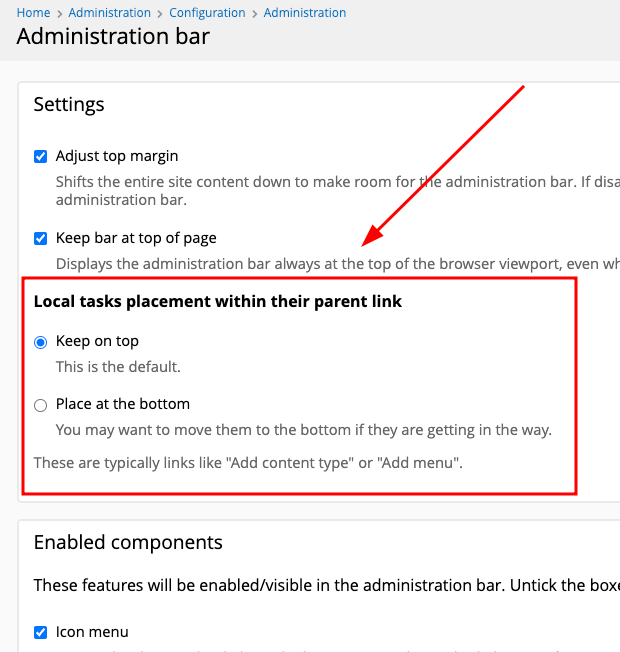 PS: I've also wrapped the settings and components in separate fieldsets. We've added quite a few options over time (and we'll add more, like #5983), so the form lacks grouping/structure (visually seems like an endless stream of checkboxes). Let me know if I should move that into a separate issue/PR.
