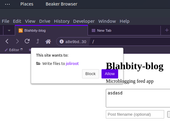- Click on 'New Drive' from beaker://desktop/.