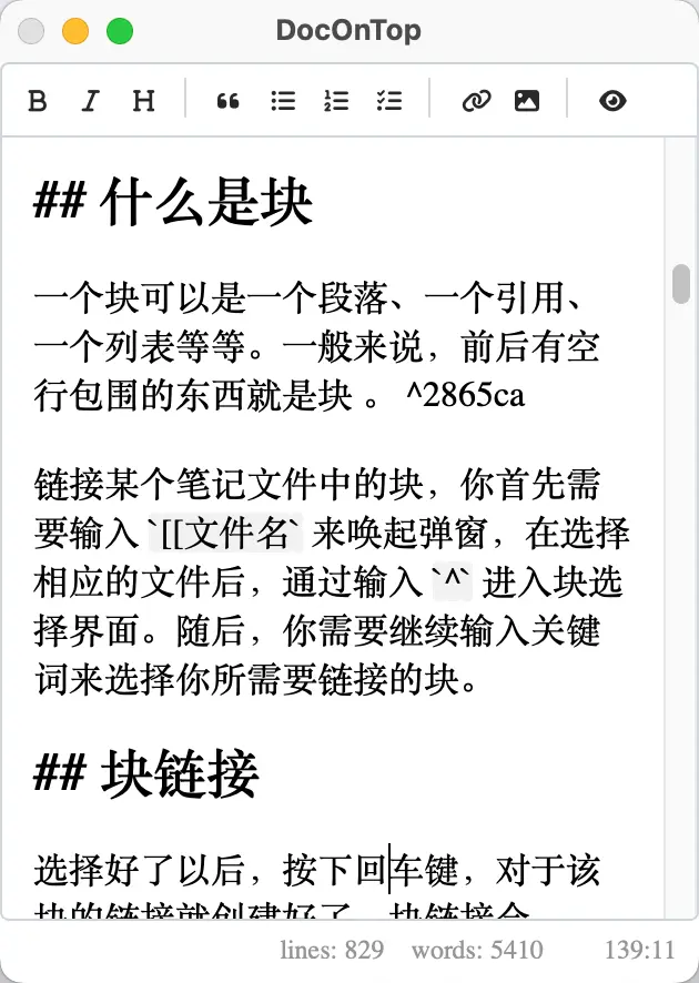 ## 介绍 我们平时使用 obsidian 或其他文档文件的时候有没有这样的体会,就是我需要对照某个笔记的内容清单做一些事情。 这是时候,如果某个笔记能置顶就好了,然后就可以悬浮在桌面上来边对照边修改了。 DocOnTop 就是为这个需求而开发的。 **主窗口预览**  ## 下载地址 https://github.com/wish5115/Niva-DocOnTop/releases ## 遇到的问题 1. 文档错误 `Niva.event.window.close` 文档是这个,实际应该是 `Niva.api.window.close` 2. Niva.api.tray.update 不生效 3. setTimeout和keydown等问题 如果用定时器setTimeout,setInterval等会导致界面卡顿直到卡死,setTimeout就停止工作了,大约执行200-300次左右会停止工作,而且定时也不准,越到后面间隔时间越久。 keydown等也有这个问题,如果你连续不停的触发,也大约执行200-300次左右会停止工作。我在keydown里用了setTimeout防止抖动,不知道是不是这个原因。 4. `Niva.api.shortcut.register` 的坑...