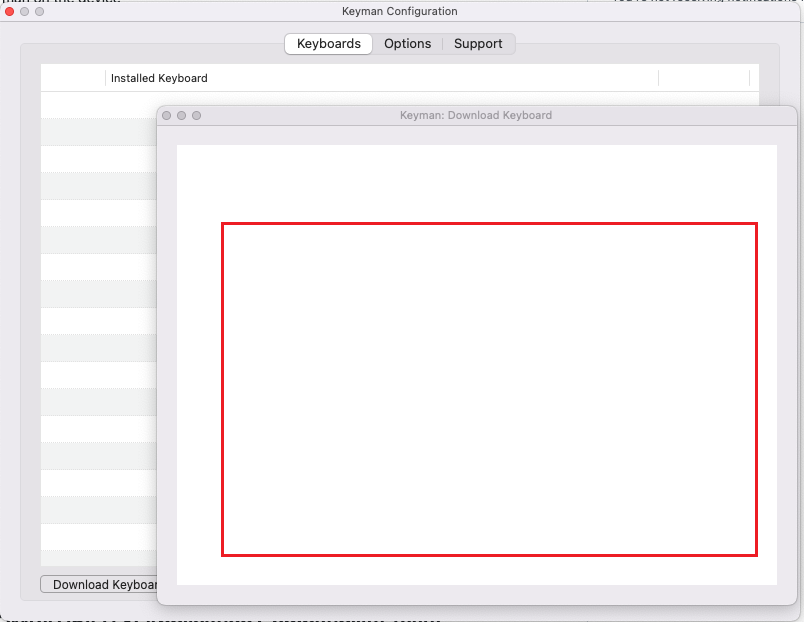 - Activate Keyman and select Keyman Configuration from the input methods menu. Click Download keyboard.