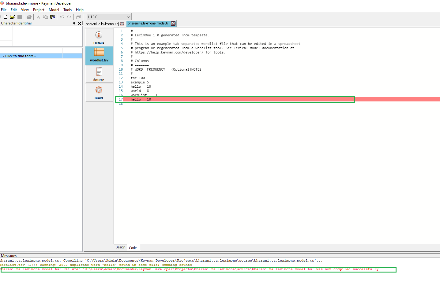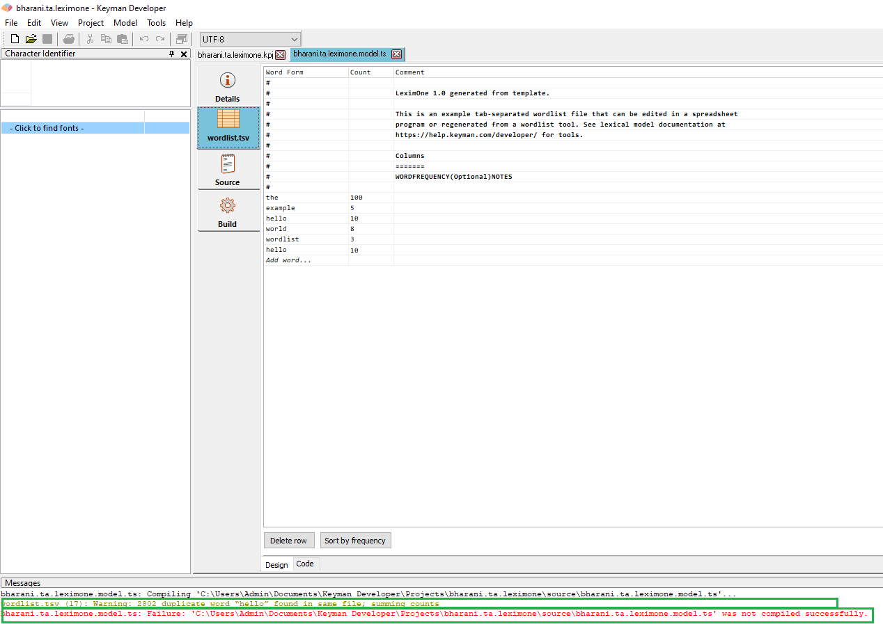- ✅ TEST_MODEL_WARNING (PASSED): Added a duplicate word into a model wordlist, then compiled it from the model editor. Verified that it throws an warning message after compiling it. (notes)