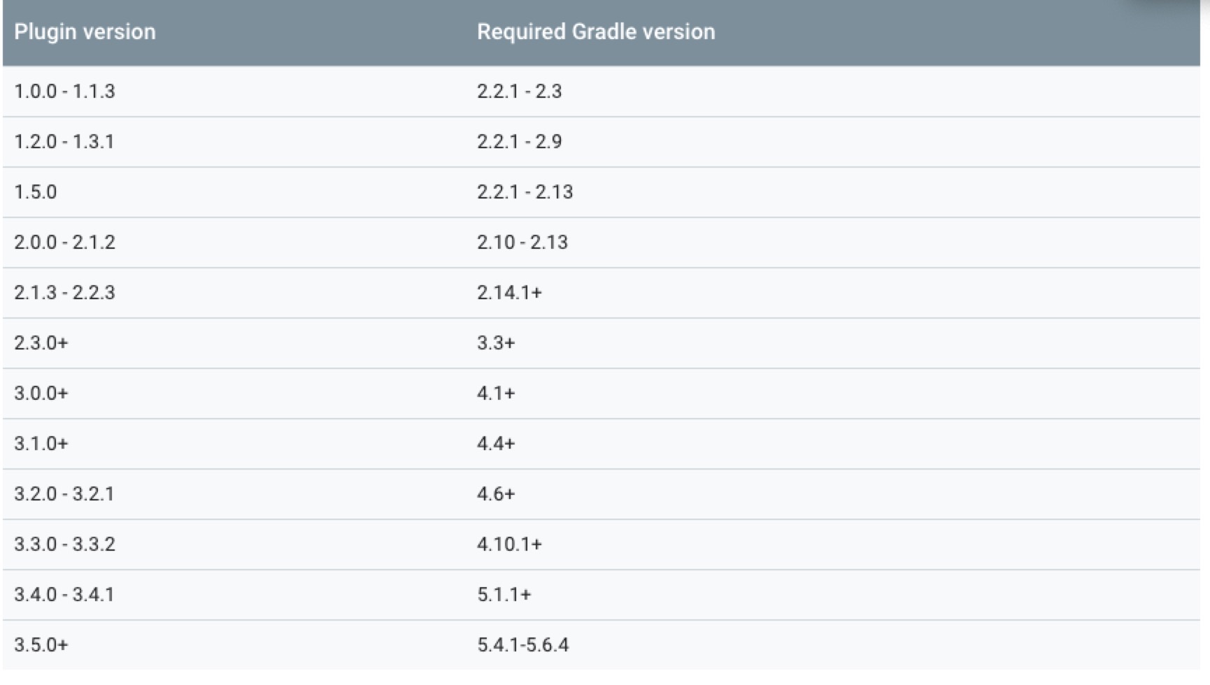 修改完可能 Android 的插件也需要修改版本。对应 Gradle 和 Android 插件版本映射表,请查看官网(自备梯子)。