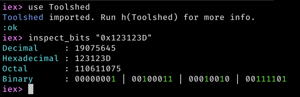 An attempt at https://github.com/elixir-toolshed/toolshed/issues/38  ### Notes - resolves https://github.com/elixir-toolshed/toolshed/issues/38 - I was stuck in naming the function; the C program https://github.com/mellowcandle/bitwise does bitwise operations so bitwise as a name...