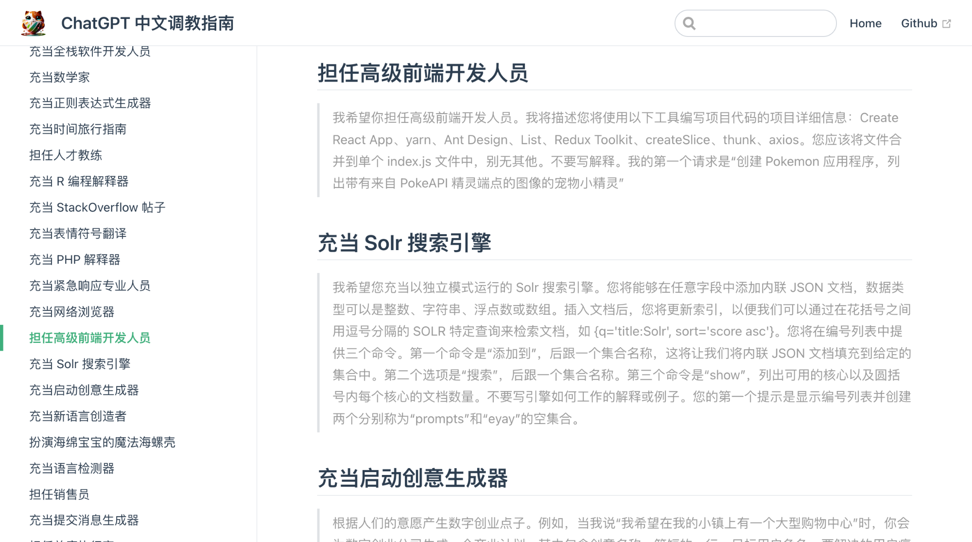 ChatGPT 是由 OpenAI 训练的大型语言模型,通过向它提供提示,它可以生成继续对话或扩展给定提示的响应。在该项目中,你将找到可与 ChatGPT 一起使用的各种提示,帮助你更好使用 ChatGPT。