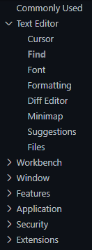 The current setting header scrolled into view (e.g., Commonly Used, should be easily distinguishable from the rest of the settings headers.