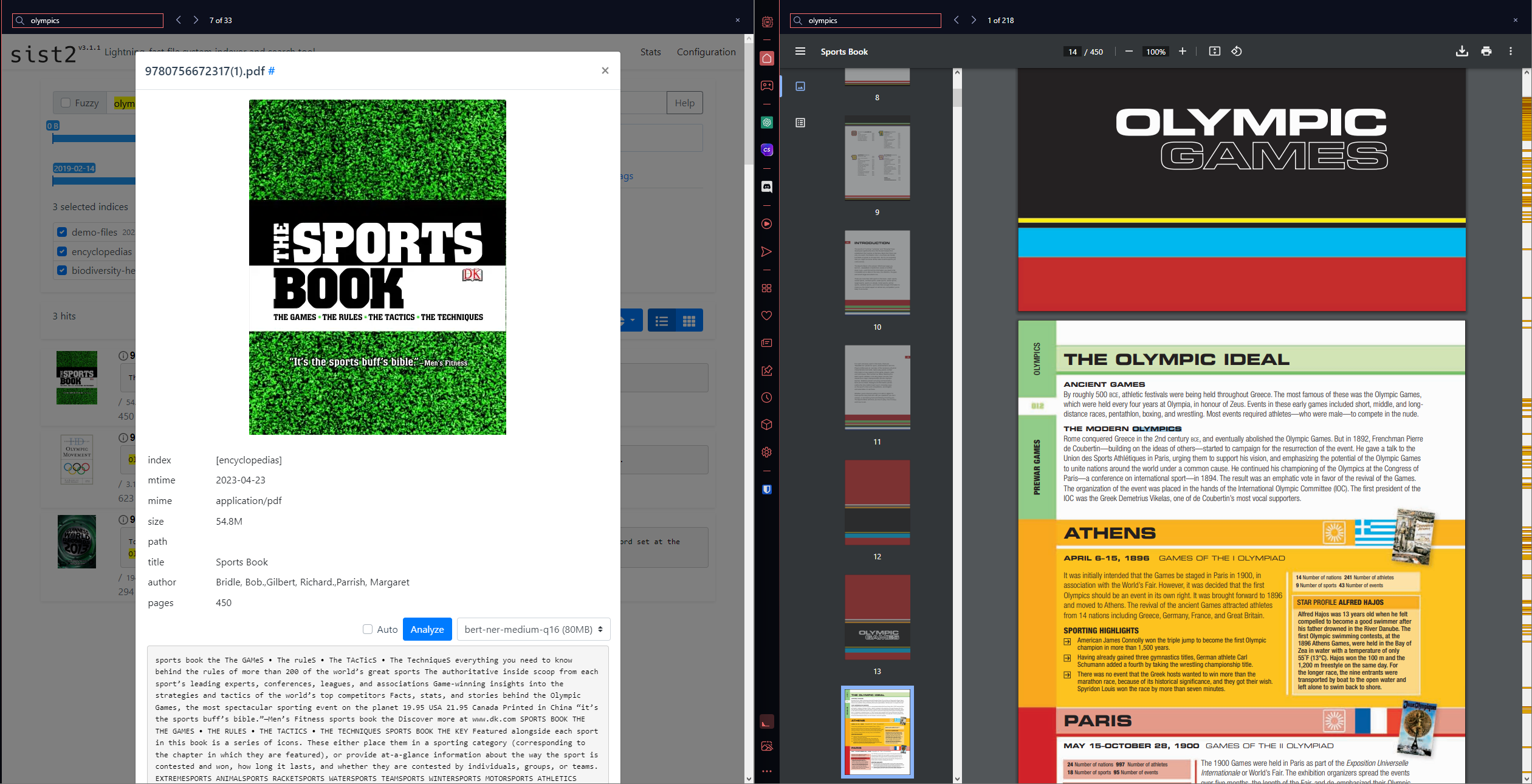 Thanks for pointing that out. The results from sist2 interface shows fewer hits than when searching in the pdf? Definitely looking forward to an enhancement for this. e.g. 33 results on the left (sist2 interface), 218 results from pdf. [image: image] https://user-images.githubusercontent.com/29805565/251501951-b07b661b-c78f-4ebc-a3ed-0cee507d8bf8.png
